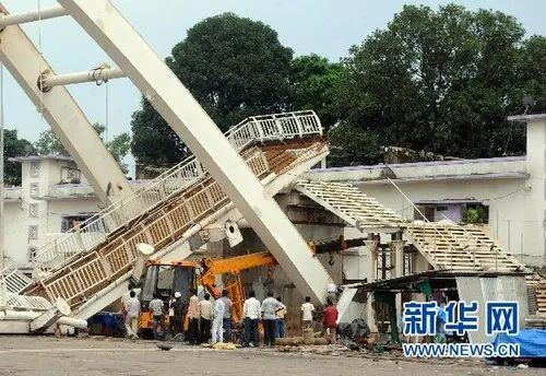 2010年9月21日,就在开幕前几天,尼赫鲁体育场外一座新建的人行天桥突然坍塌,1死27伤。印度出动军队,才在5天之内抢修了简易天桥。