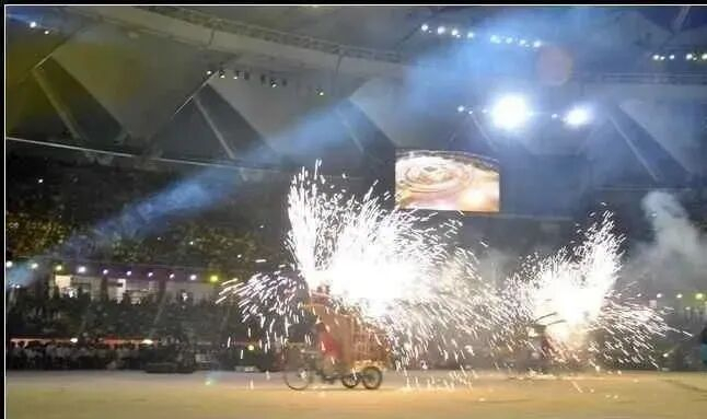 在开幕式表演中,一辆三轮车居然莫名其妙地开进会场……然后,发现走错了,又开走,当时观众们还以为这是别出心裁的节目。